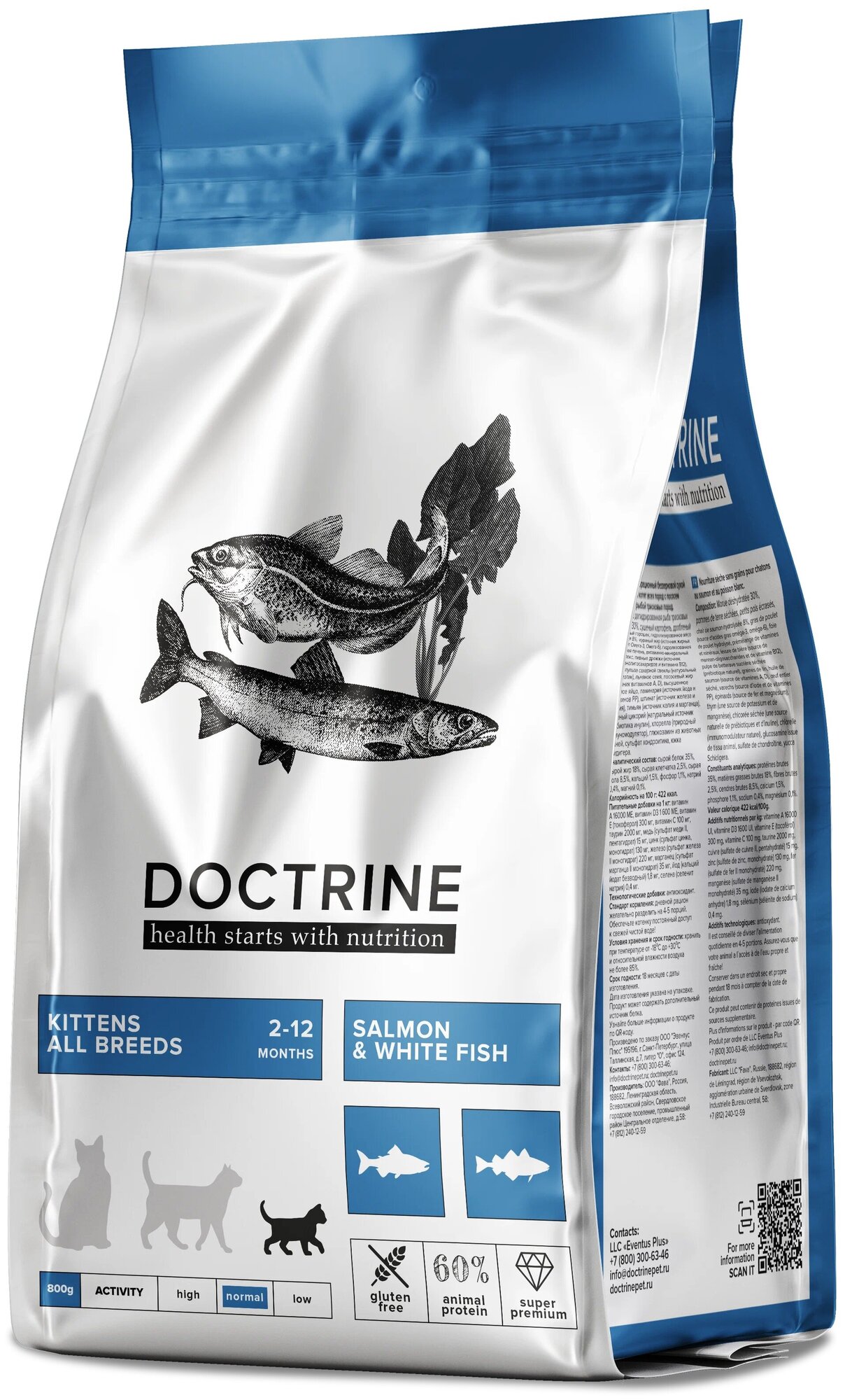 Сухой корм для котят Беззерновой DOCTRINE с лососем и белой рыбой 800г / доктрин, доктрина