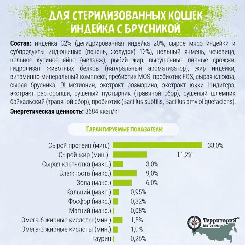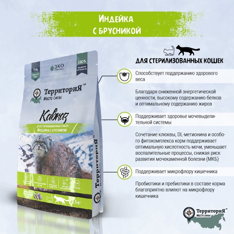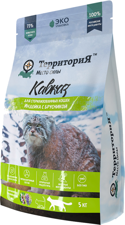 ТерриториЯ "Кавказ" с индейкой и брусникой сухой корм для стерилизованных кошек и кастрированных котов 5кг интересное: