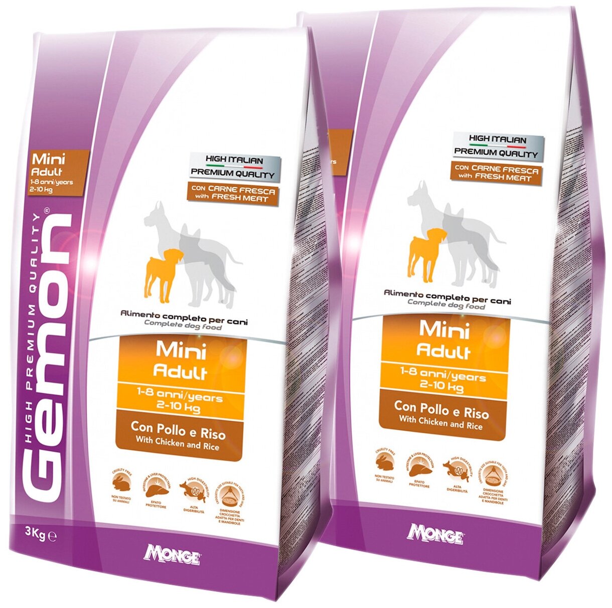Купить GEMON DOG ADULT MINI для взрослых собак маленьких пород с курицей и рисом (3 + 3 кг)