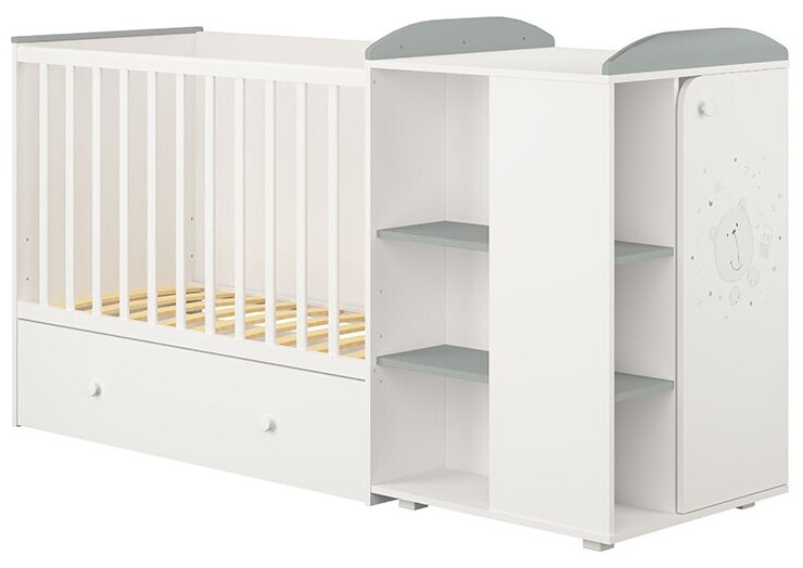 Кроватка-трансформер детская Polini kids French 800, Teddy, с комодом, белый-серый интересное: