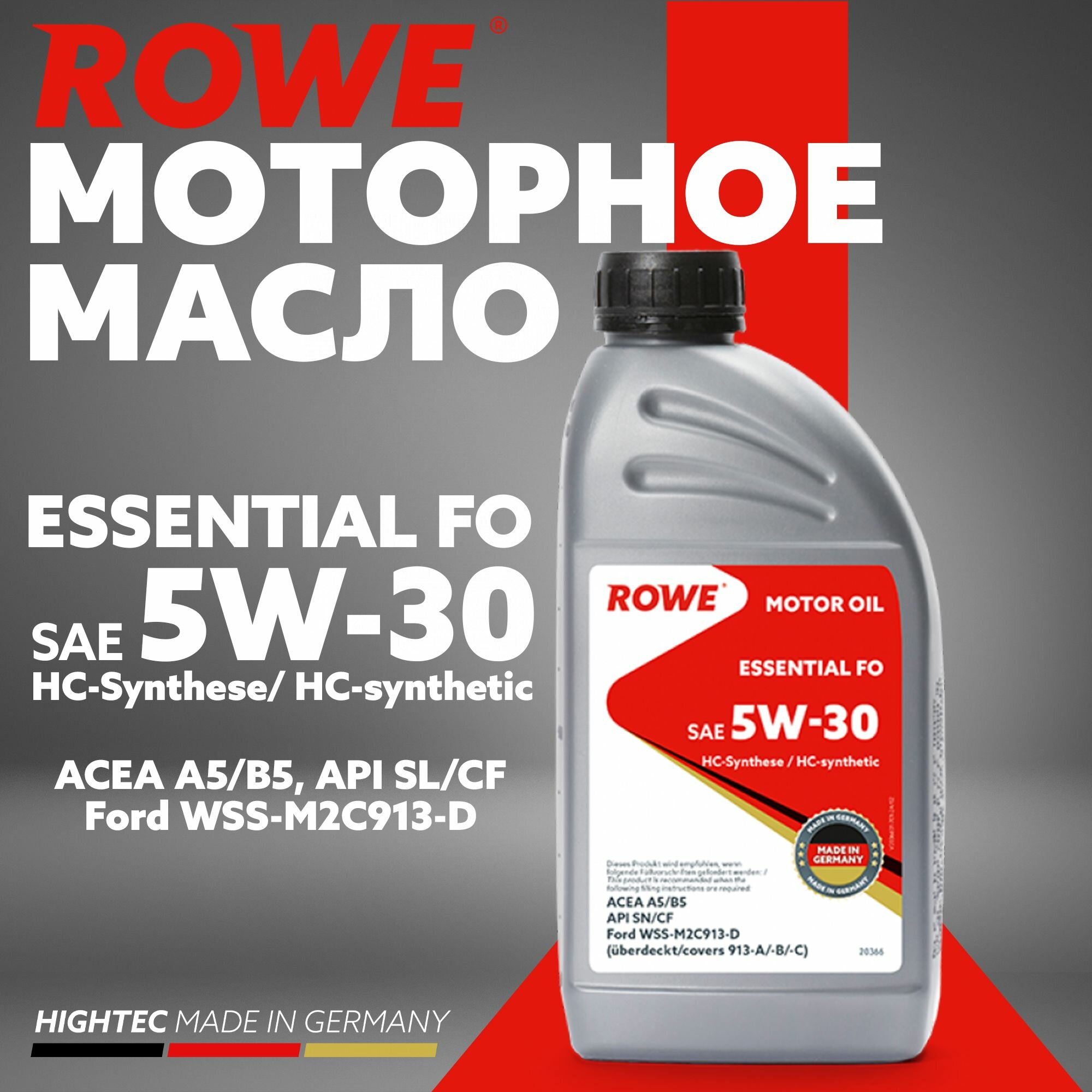 ROWE Масло Моторное Rowe Essential Sae 5W-30 Fo (5Л) Acea A5/B5, Api Sl/Cf, Ford Wss-M2c913-D (Uberdeckt/Covers 913-A/-B/-C)