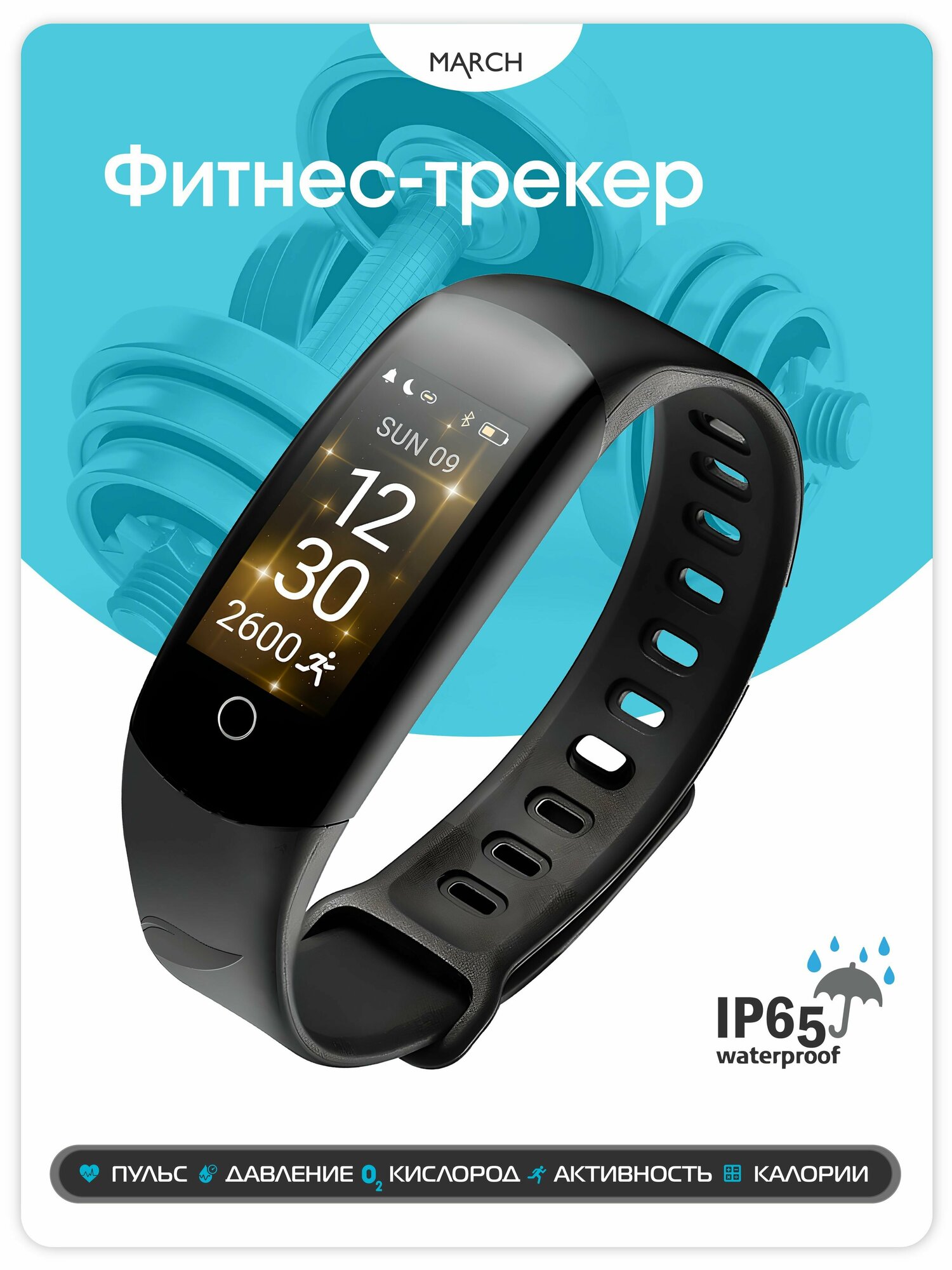 Фитнес-браслет Red Line RF-01, 0.96", IP68, пульсометр, датчик уровня кислорода, черный