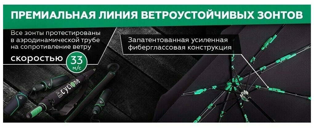 Зонт автомат большой купол Fulton Tornado цвет Чёрный интересное: