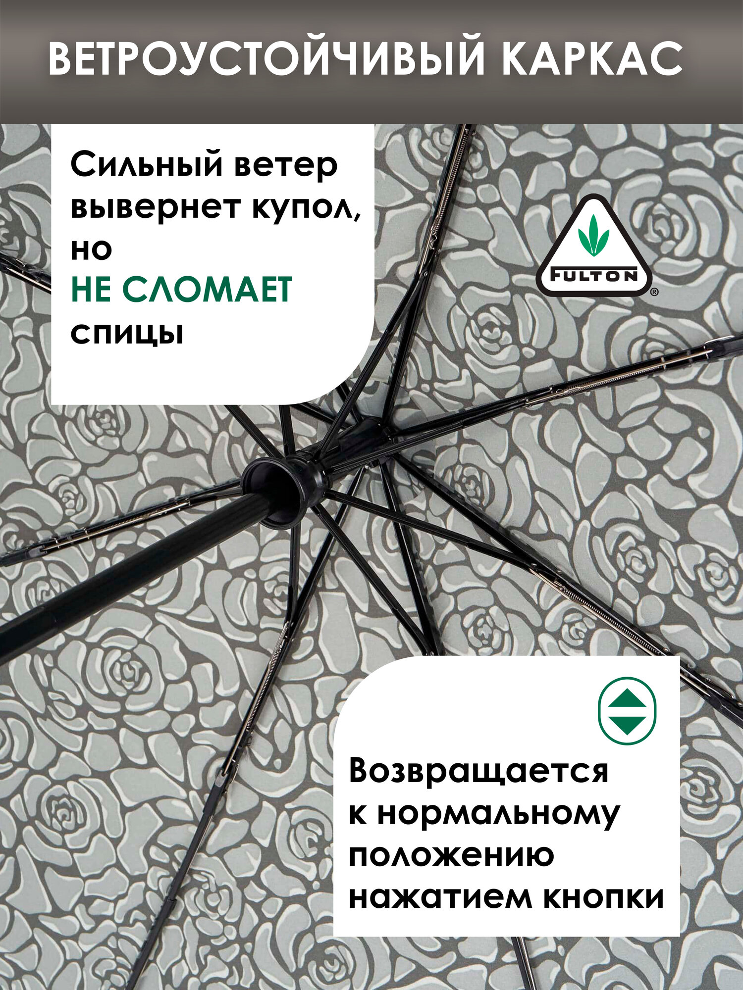 Купить R348-4105 RosesGrey (Серые розы) Зонт женский автомат Fulton