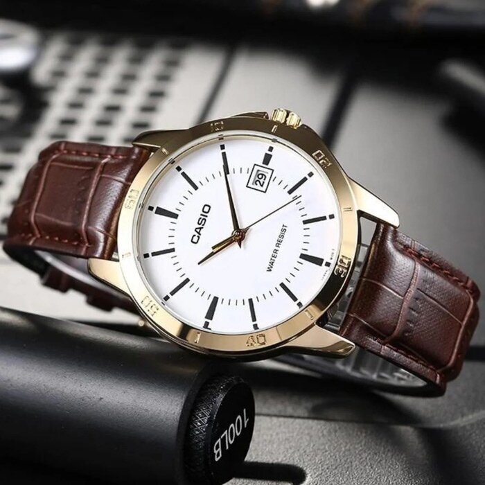 Наручные часы CASIO MTP-V004GL-7A мужские, кварцевые, водонепроницаемые, коричневый