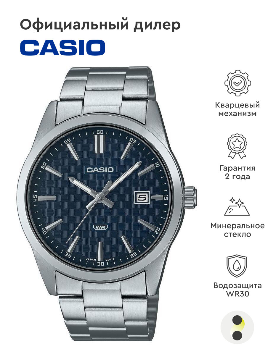 Наручные часы CASIO Standard Мужские японские наручные часы Casio MTP-VD03D-2A с гарантией мужские, кварцевые, водонепроницаемые, синий, серебряный