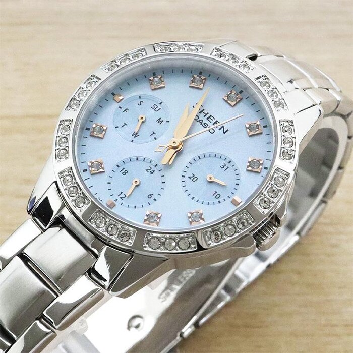 Наручные часы CASIO Sheen SHE-3517D-2A, женские, сапфировое стекло, WR50, серебристый, голубой