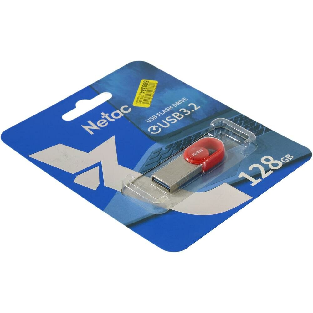 Флешка USB NETAC UM2 128ГБ, USB3.2, серебристый и красный [nt03um2n-128g-32re]