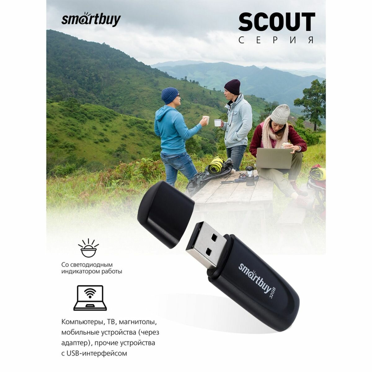 USB флешка SMARTBUY 32Gb Scout black USB 2.0 интересное: