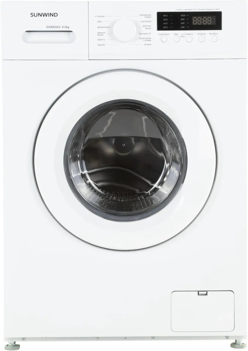 Стиральная машина SunWind SWME603 белый корпус, фронтальная загрузка до 6кг, максимальная скорость отжима 1000об/мин