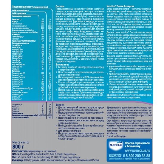 Ниже Вы можете прочитать отзывы на Смесь Nutrilon (Nutricia) Пепти Аллергия, с рождения, 800 г, ознакомится с подробными характеристиками, посмотреть интересные обзоры и фотографии на Смесь Nutrilon (Nutricia) Пепти Аллергия, с рождения, 800 г.