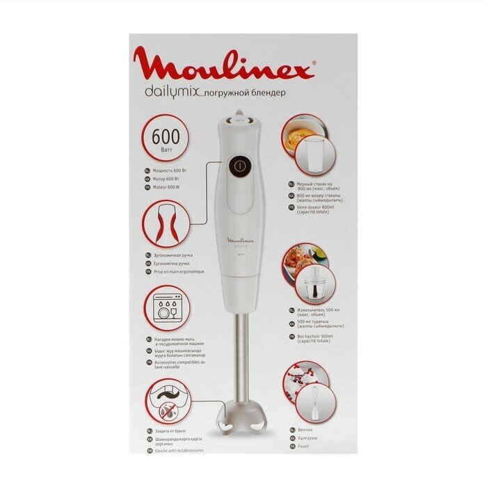 Блендер Moulinex DD533132, погружной, 600 Вт, 0.5/0.8 л, 1 скорость, белый