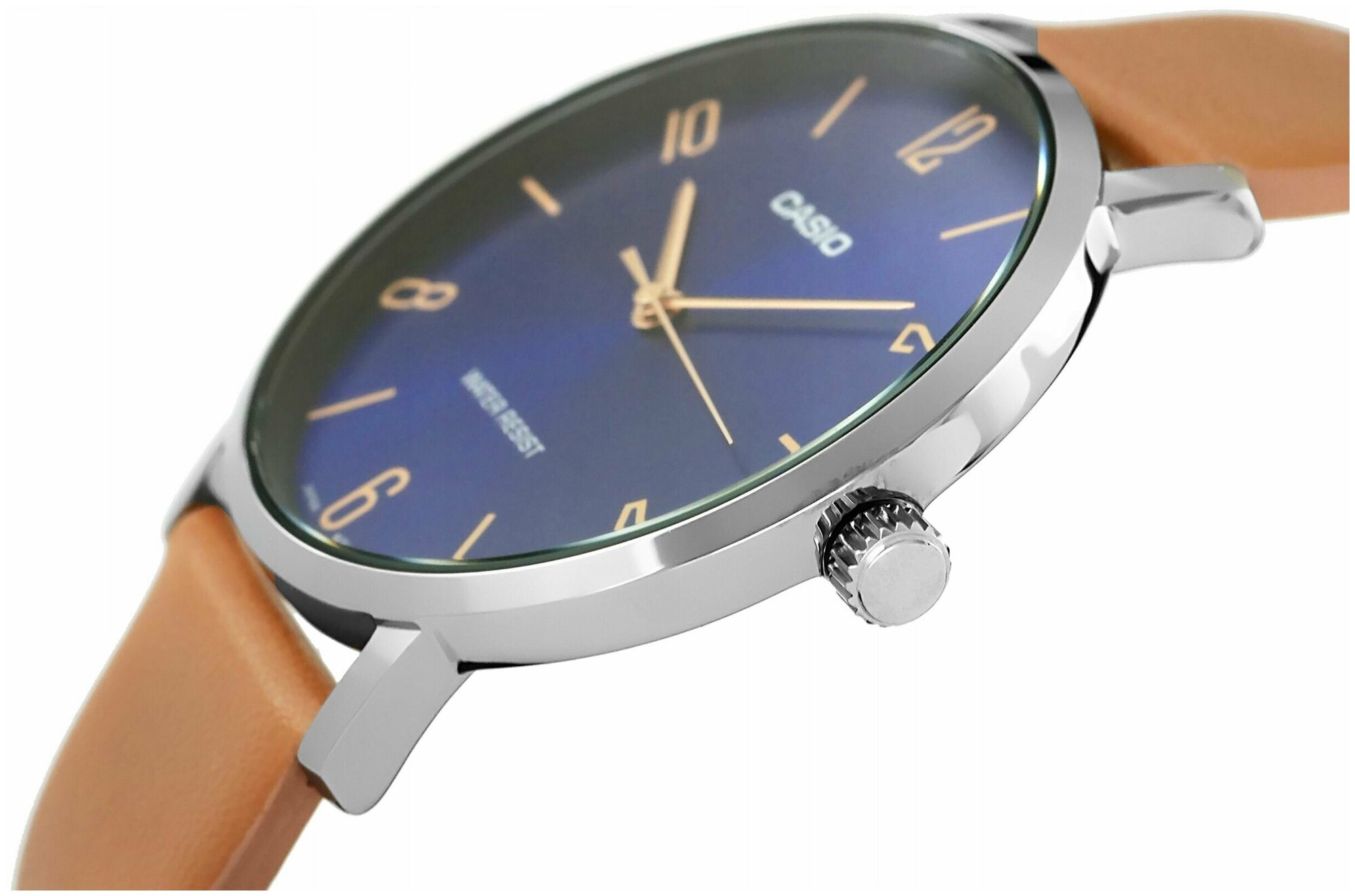 MTP-VT01L-2B Casio наручные часы кварцевые WR30 (3 атм) мужские хром, коричневый, синий минеральное стекло