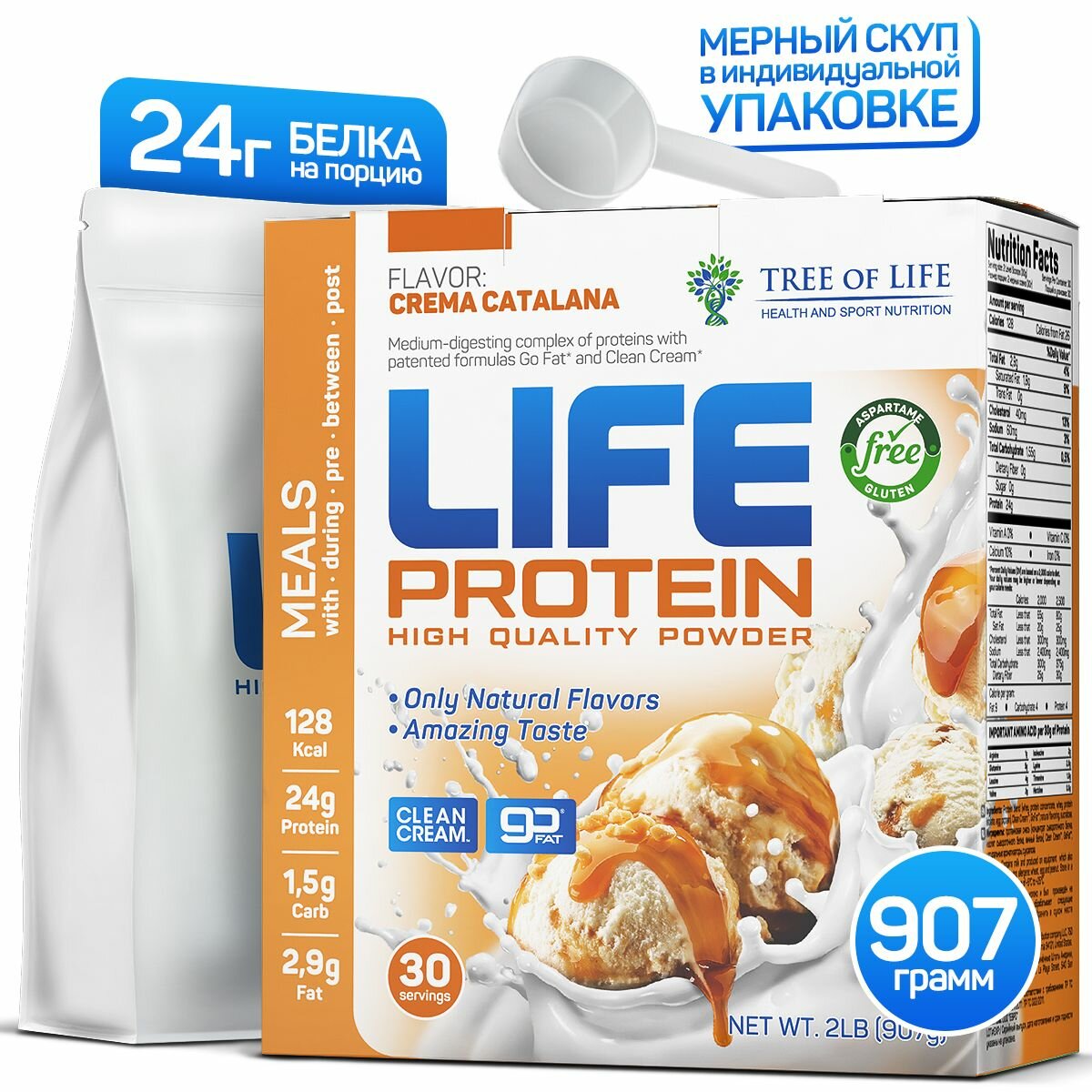 Протеин Tree of Life Life Protein, премиум, 80% белка, крем-брюле, 907г