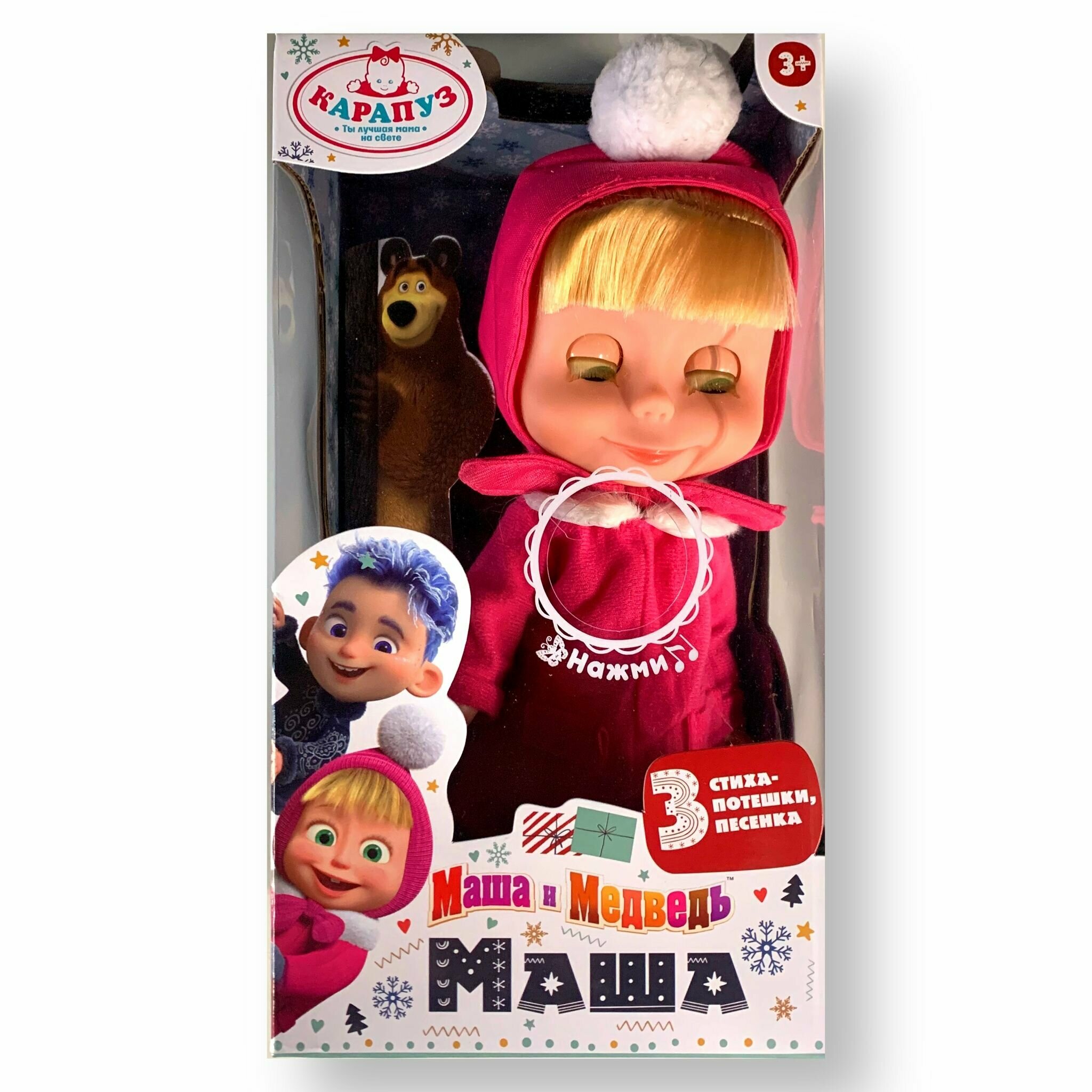Купить Кукла маша В зимней одежде серия маша И медведь 25 см 3 стиха-потешки, песенка карапуз 83033-C