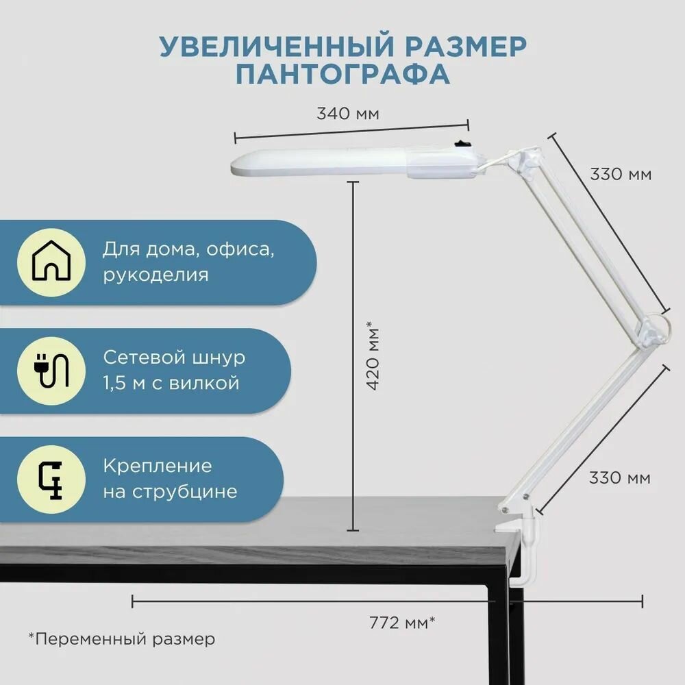 Светильник настольный 11Вт 2G7 белый струбцина Дельта