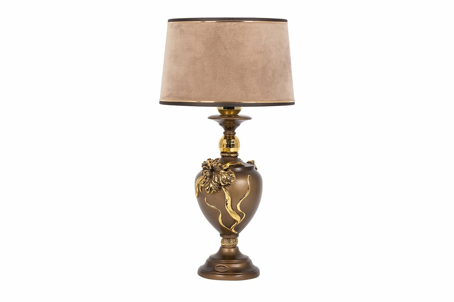 Настольная лампа Bogacho Флер де Лис бронзовая с шоколадным абажуром Тюссо