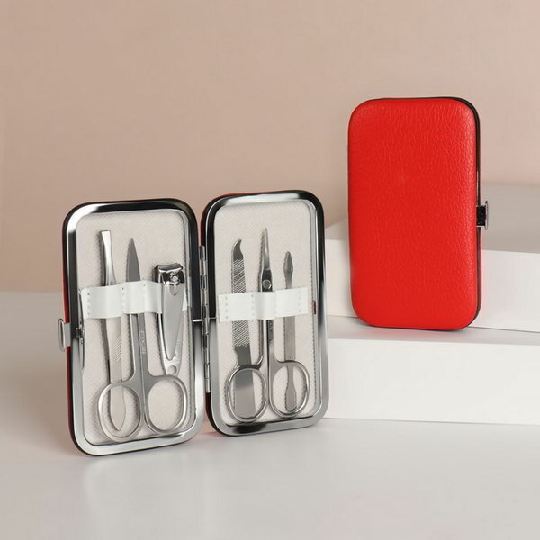 Набор маникюрный, 6 предметов, в футляре, цвет красный интересное: