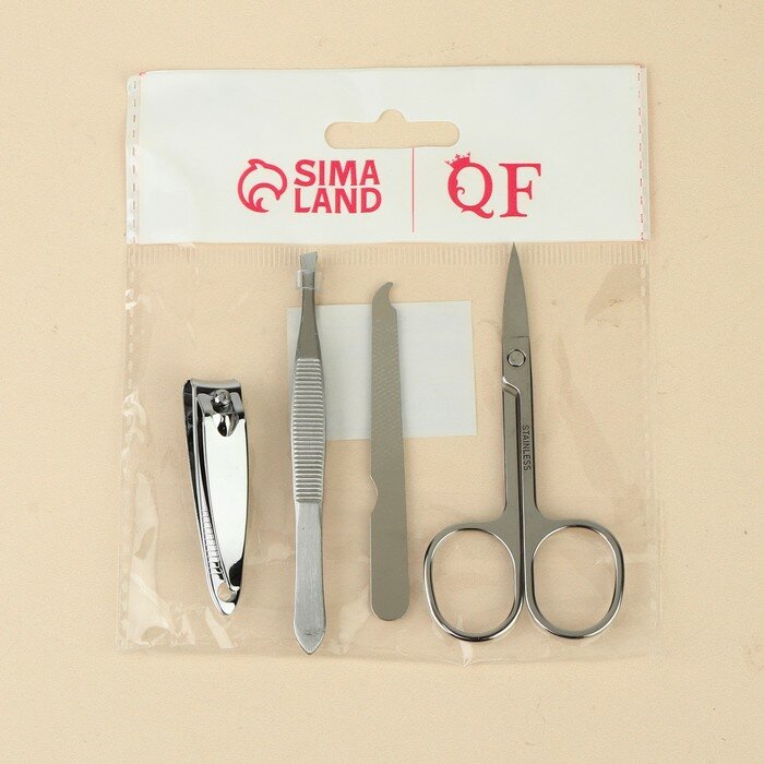 QF Набор маникюрный, 4 предмета, цвет серебристый