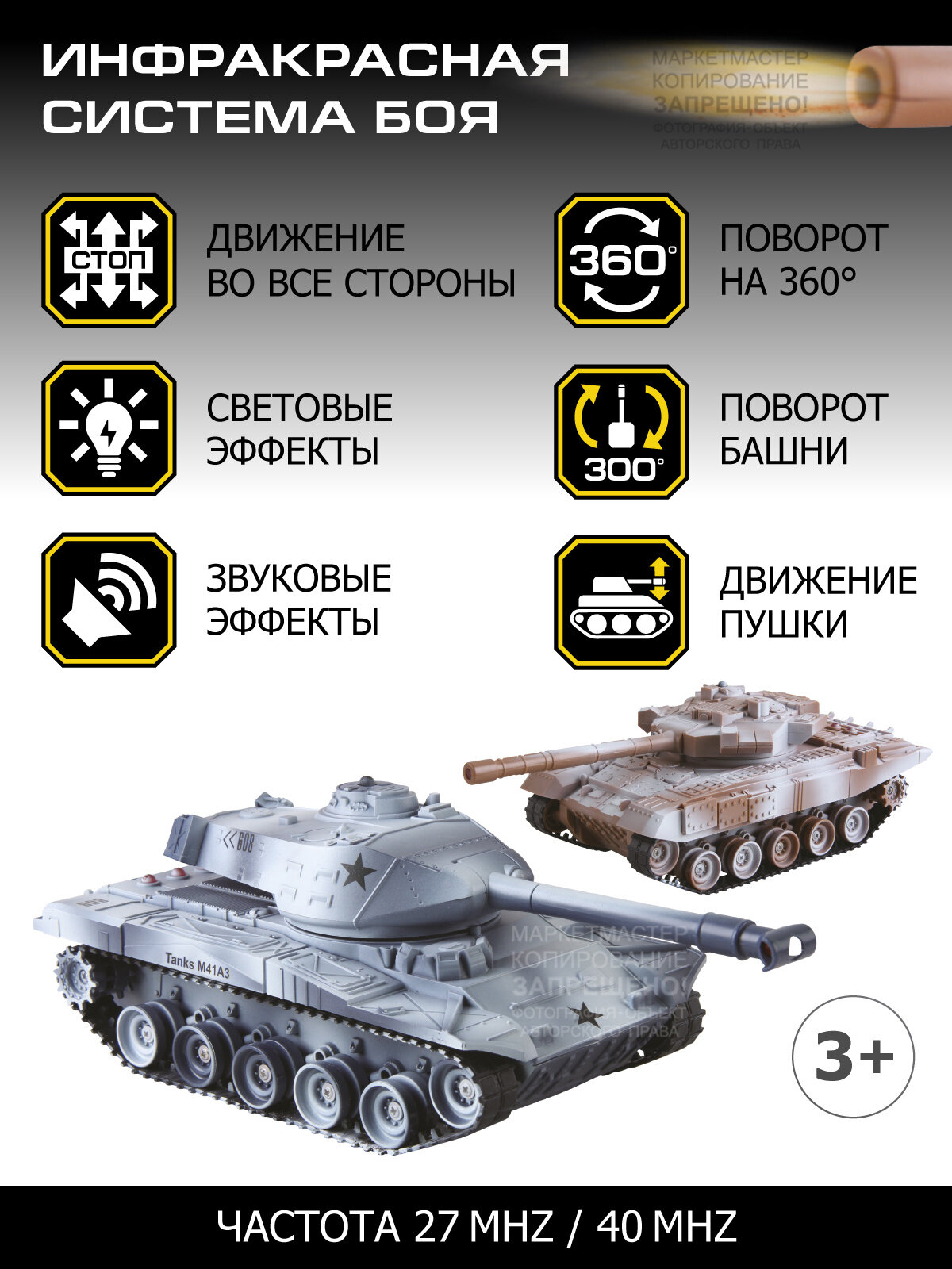 Игрушка на радиоуправлении AUTODRIVE Танковый бой М1:32 ИК система 27МГц и 40МГц повороты башни гусеничный ход JB1168618