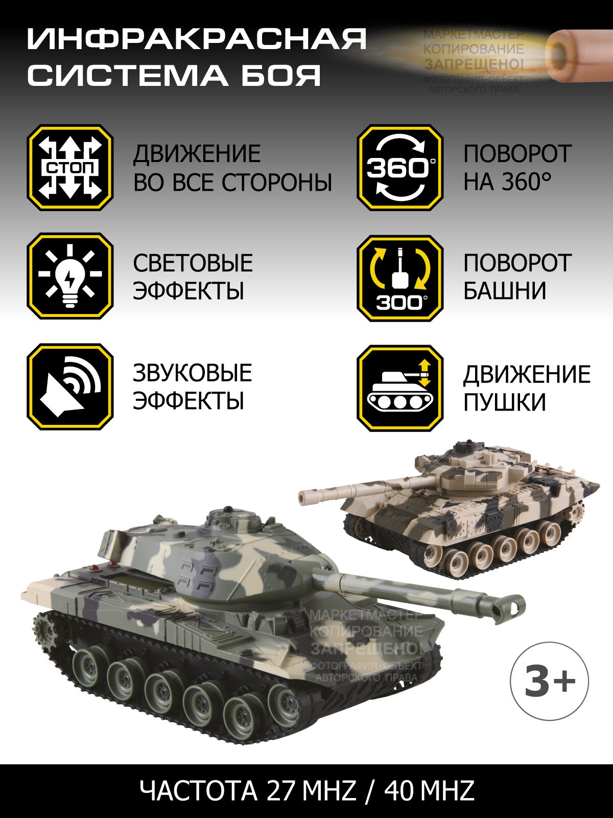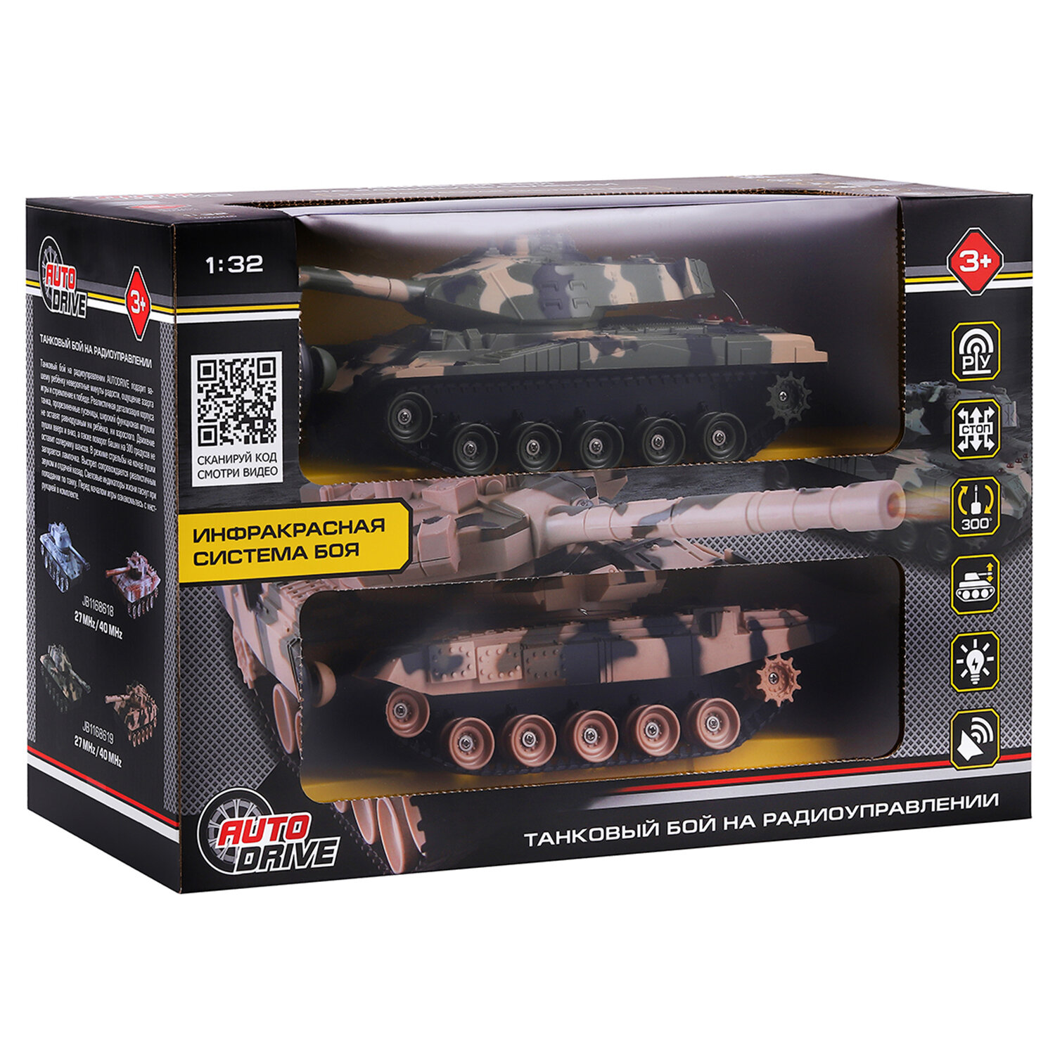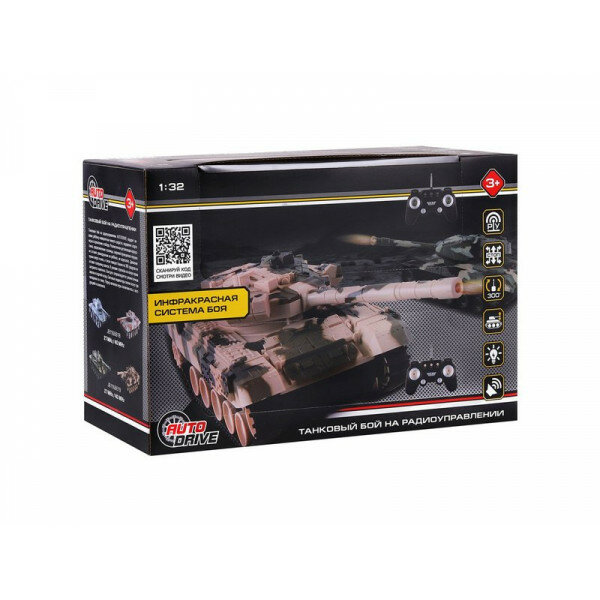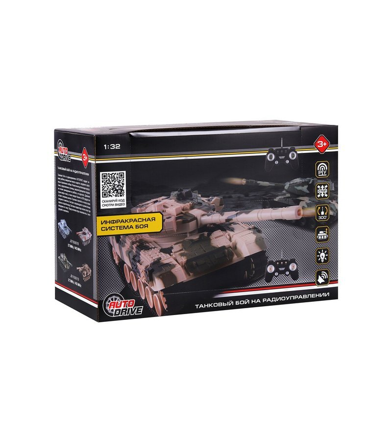 Игрушка на радиоуправлении AUTODRIVE Танковый бой М1:32 ИК система 27МГц и 40МГц повороты башни гусеничный ход JB1168618