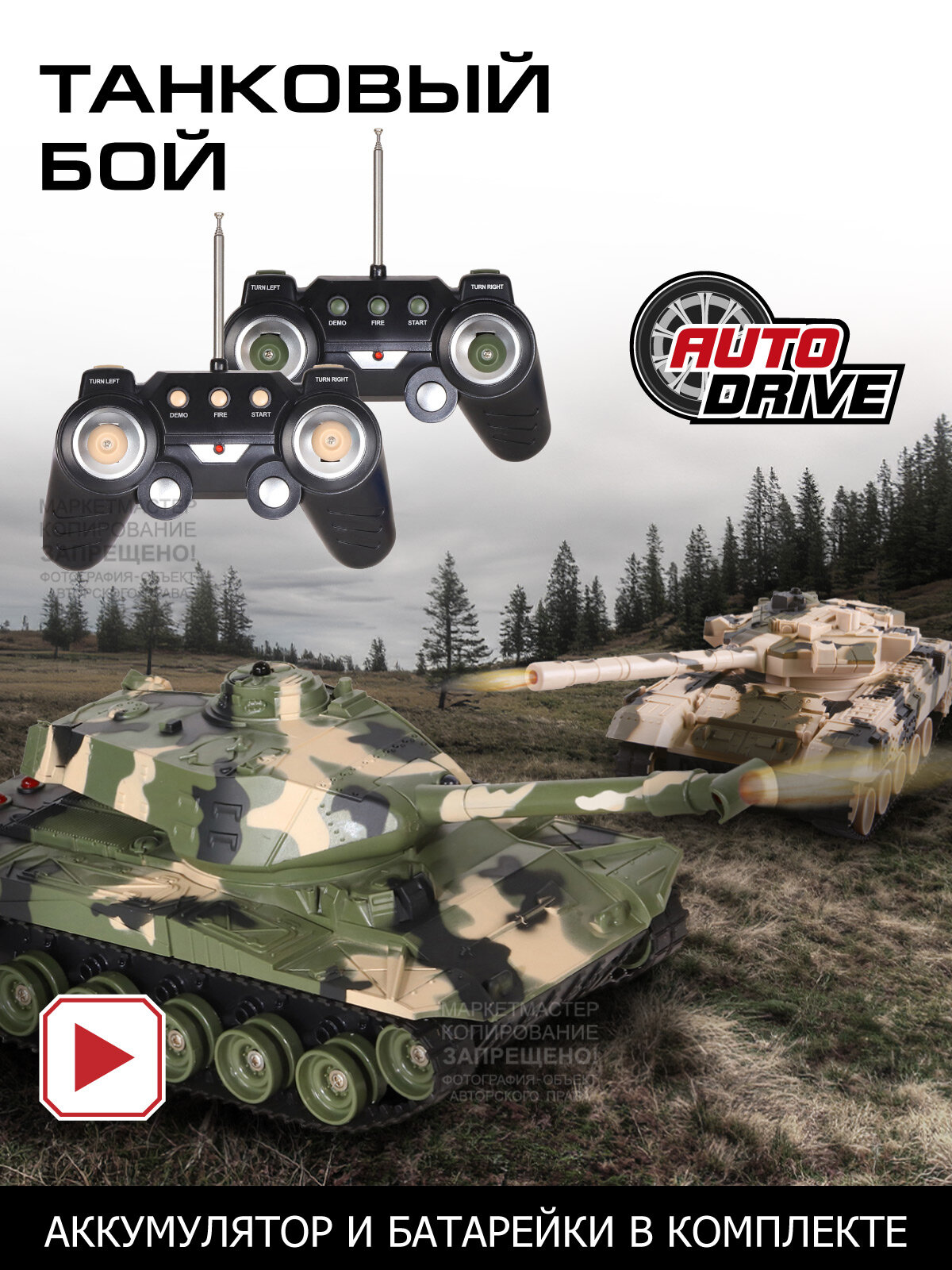 Ниже Вы можете прочитать отзывы на Танковый бой на радиоуправлении ТМ AUTODRIVE, М1:32, 2 танка, JB1168619, ознакомится с подробными характеристиками, посмотреть интересные обзоры и фотографии на Танковый бой на радиоуправлении ТМ AUTODRIVE, М1:32, 2 танка, JB1168619.
