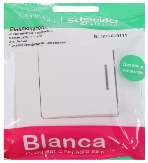 Выключатель одноклавишный Systeme (Schneider) Electric Blanca BLNVS010111, с подсветкой, белый