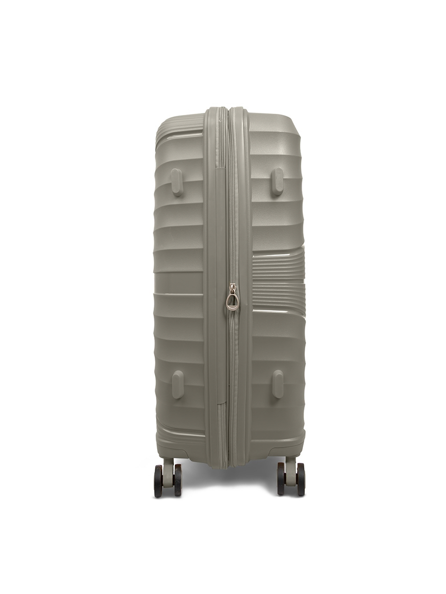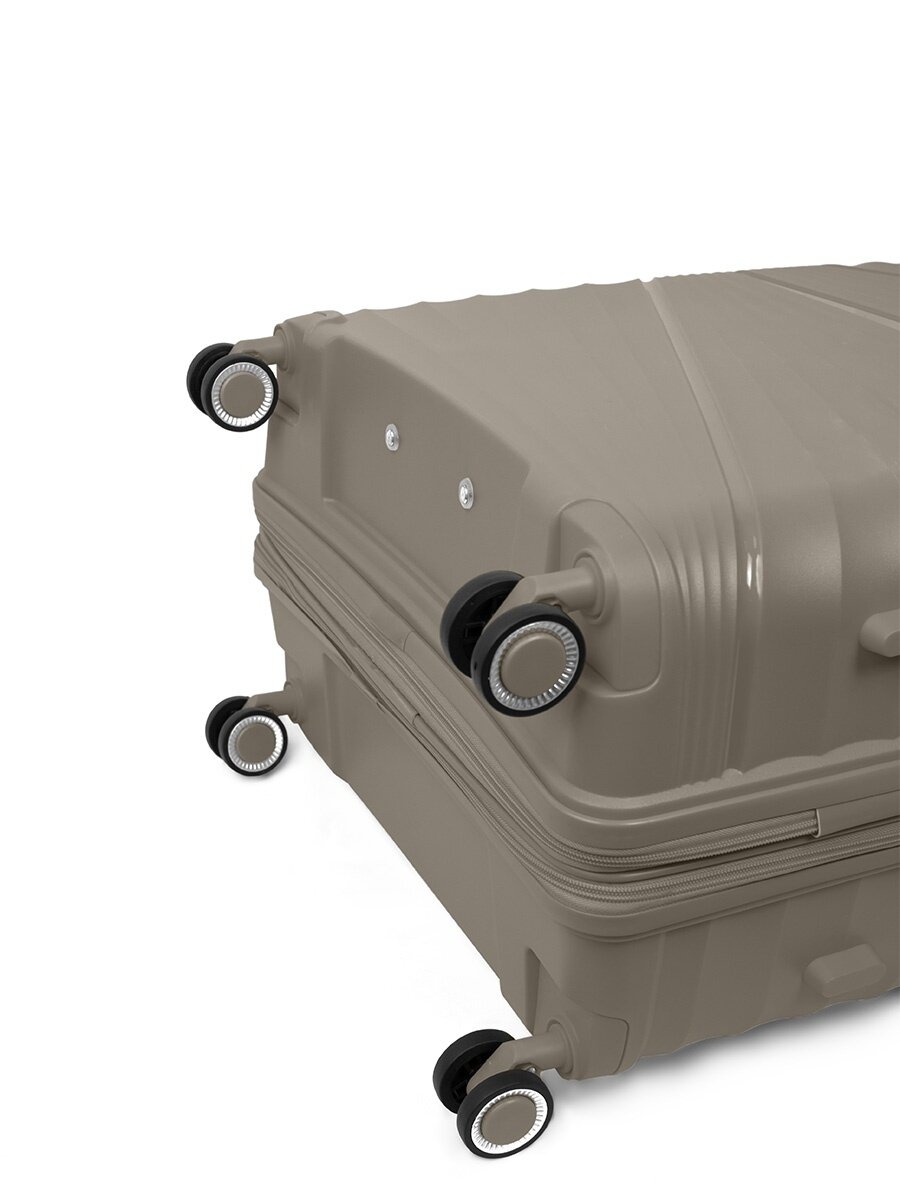 Купить Чемодан на колесах дорожный средний багаж для путешествий m TEVIN размер М 64 см 62 л легкий 3.2 кг прочный полипропилен Серый матовый лучи