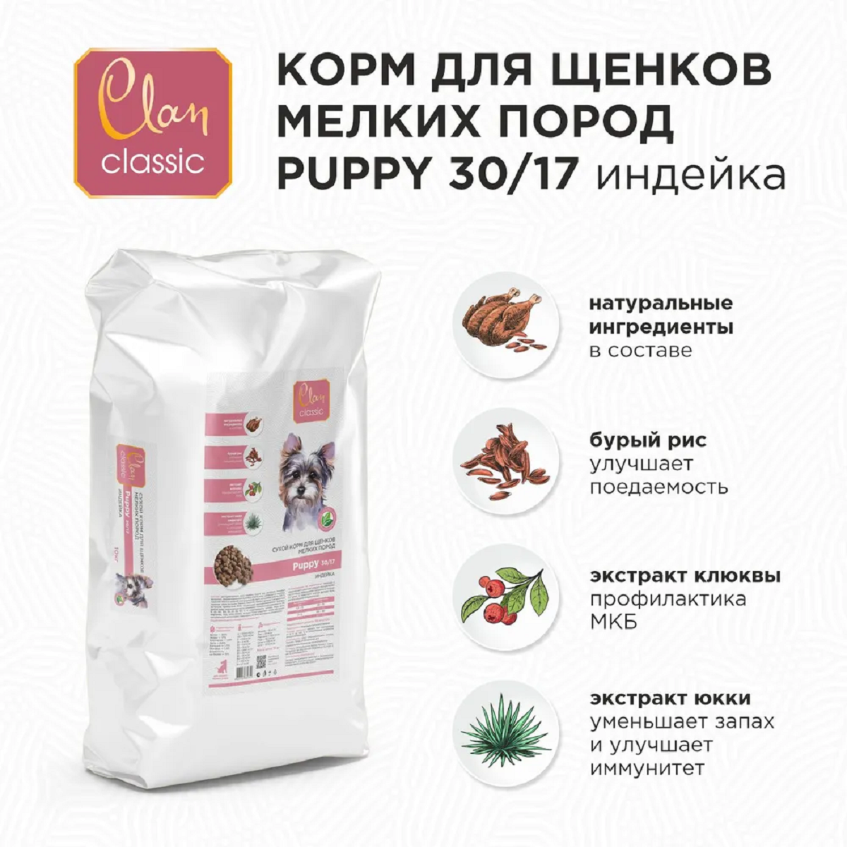 Корм Clan Classic Puppy 30/17 для щенков малых пород, с индейкой, 10 кг