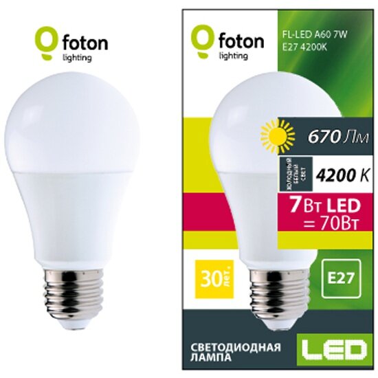 FL-LED A60 7W E27 4200К 220В 670Лм 60*109мм FOTON LIGHTING - лампа светодиодная