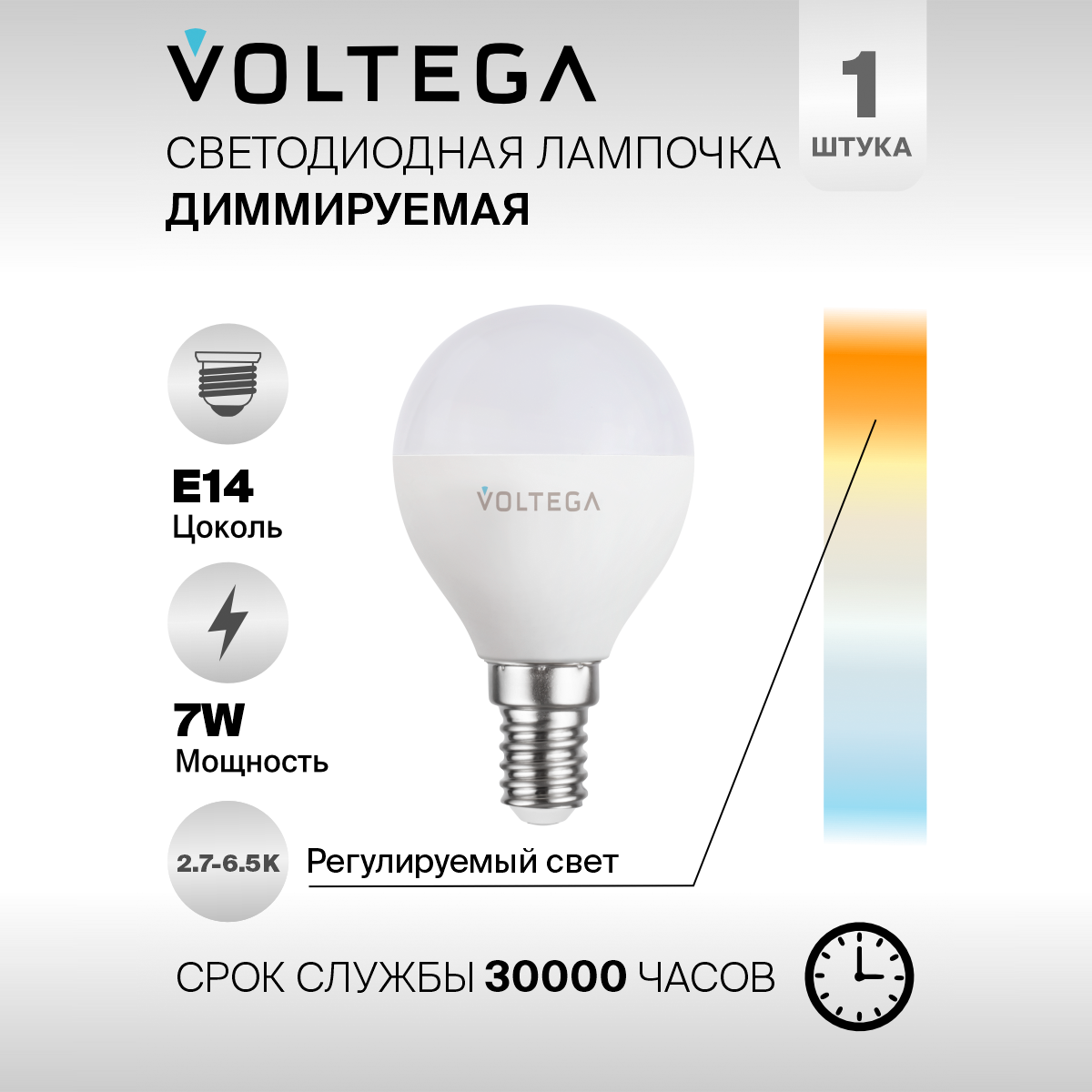 Лампочка светодиодная E27 форма шар матовый 7W теплый свет Voltega Simple Globe 2800K упаковка 10 штук