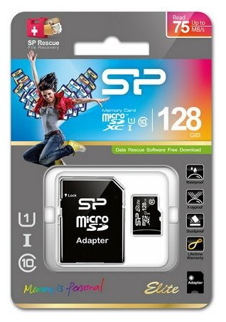 Карта памяти microSDXC UHS-I U1 Silicon Power Elite 128 ГБ, 100 МБ/с, Class 10, SP128GBSTXBV1V20, 1 шт., без адаптера