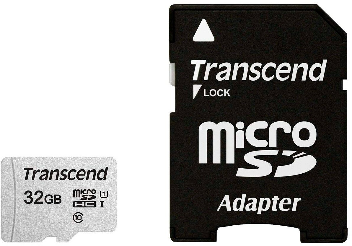 Transcend Карта памяти 32ГБ Transcend TS32GUSD300S-A microSD HC UHS-I + адаптер (ret)