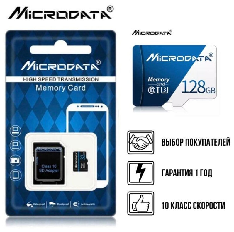 Карта памяти MyPads Microdata Micro SD (SDHC) 128GB Class 10 UHS-1. Подходит для зеркала видеорегистратора / авторегистратора / детского фотоаппар. интересное: