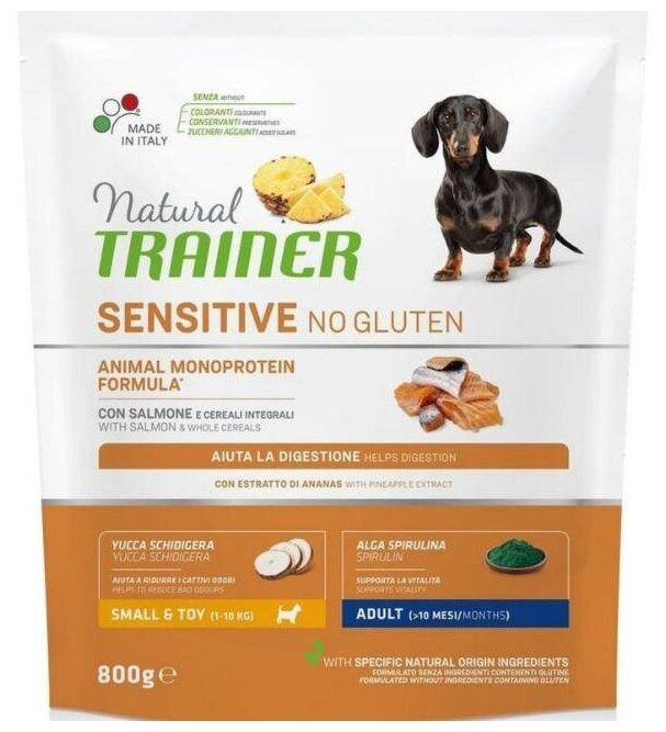 Сухой корм для собак TRAINER Natural Sensitive No Gluten, гипоаллергенный, при чувствительном пищеварении, лосось 1 уп. х 1 шт. х 800 г (для мелких и карликовых пород)