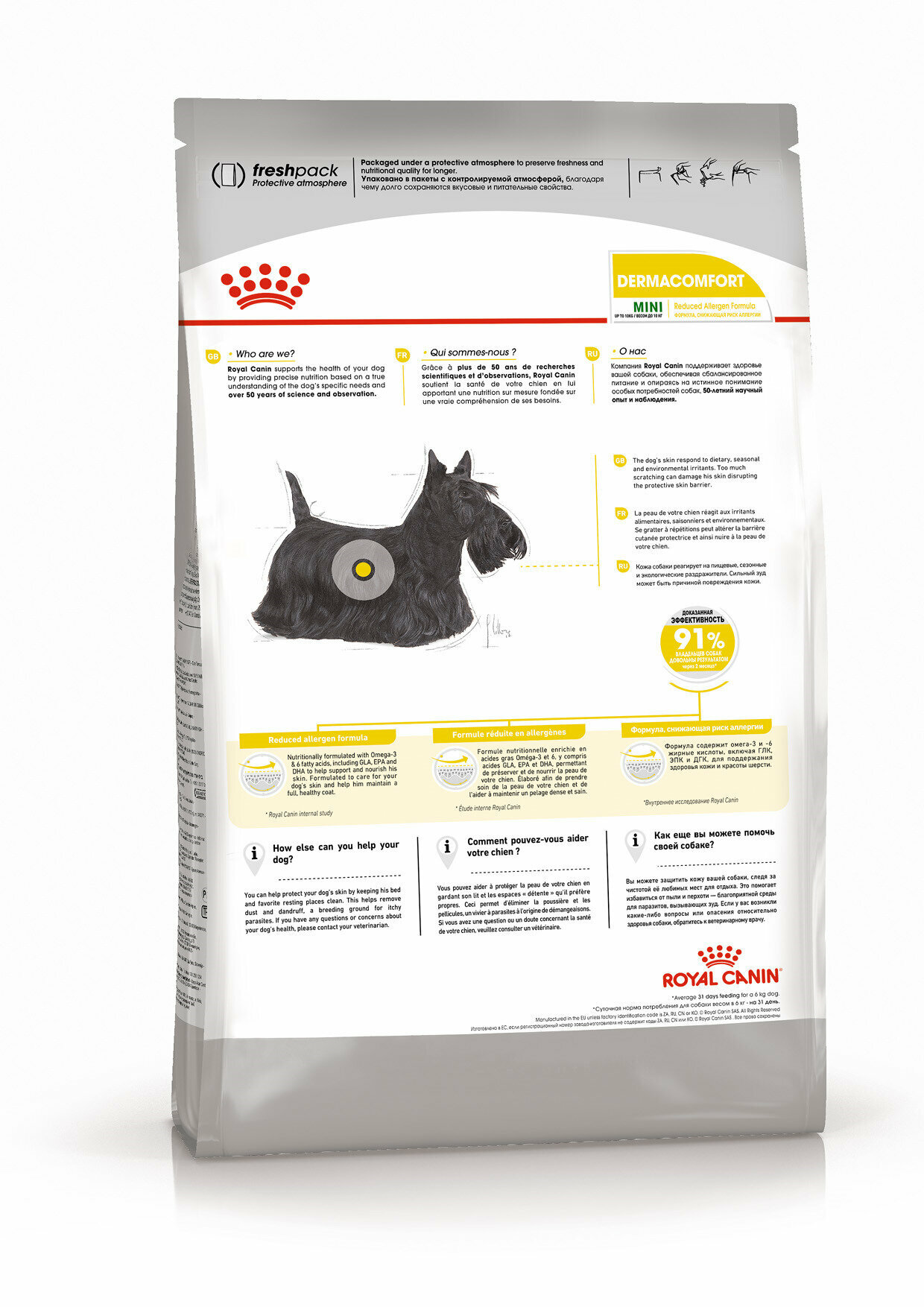 Сухой корм Royal Canin Mini Dermacomfort для взрослых собак мелких размеров (весом от 1 до 10 кг), при раздражениях и зуде кожи, связанных с повышенной чувствительностью, от 10 месяцев до 12 лет, 3 кг
