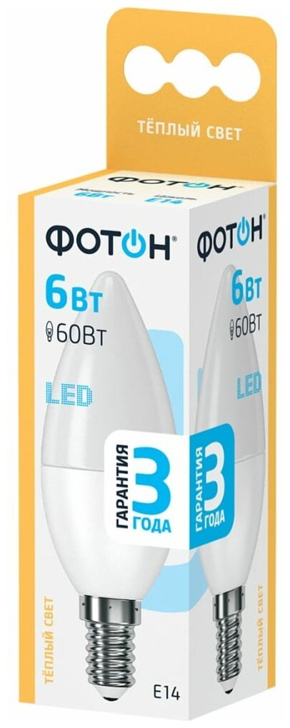Светодиодная лампа Фотон B35 6Вт 3000K E14 интересное: