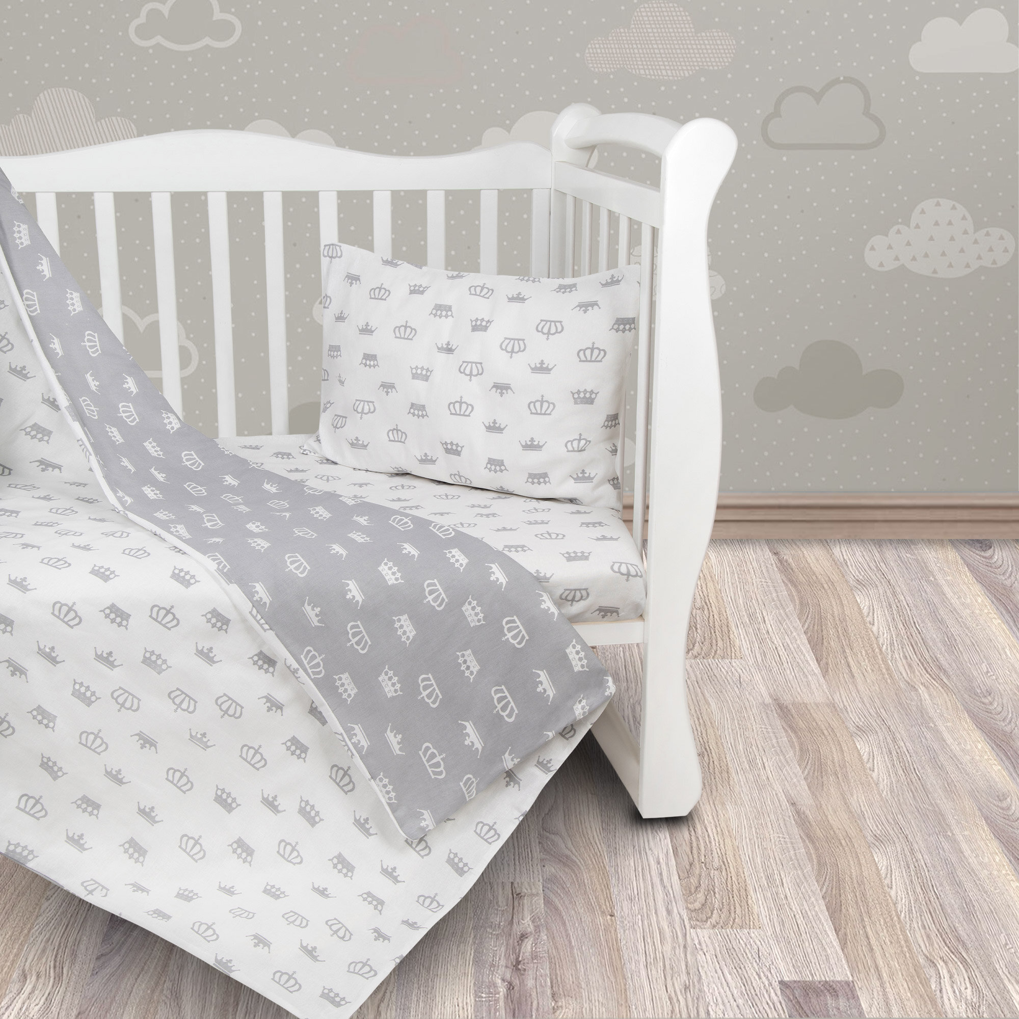 Купить Комплект в кроватку 3 предмета AmaroBaby BABY BOOM (Короны/серый, бязь)