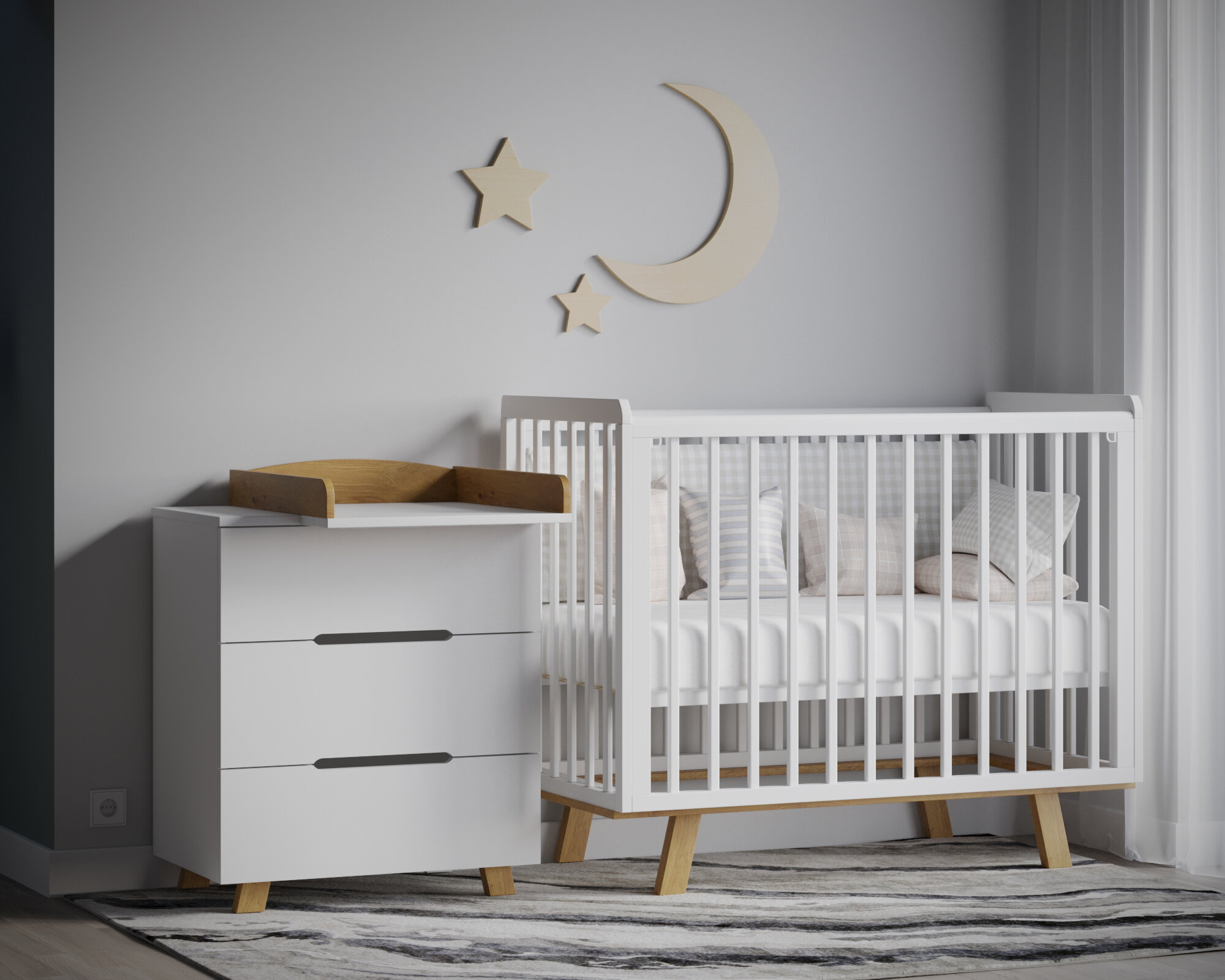 Кроватка детская Polini kids Porto 1300, белый-дуб каменный