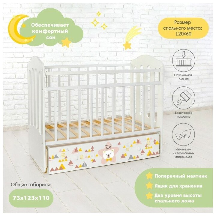 Детская кроватка "Мишка" на маятнике, с ящиком, цвет белый интересное: