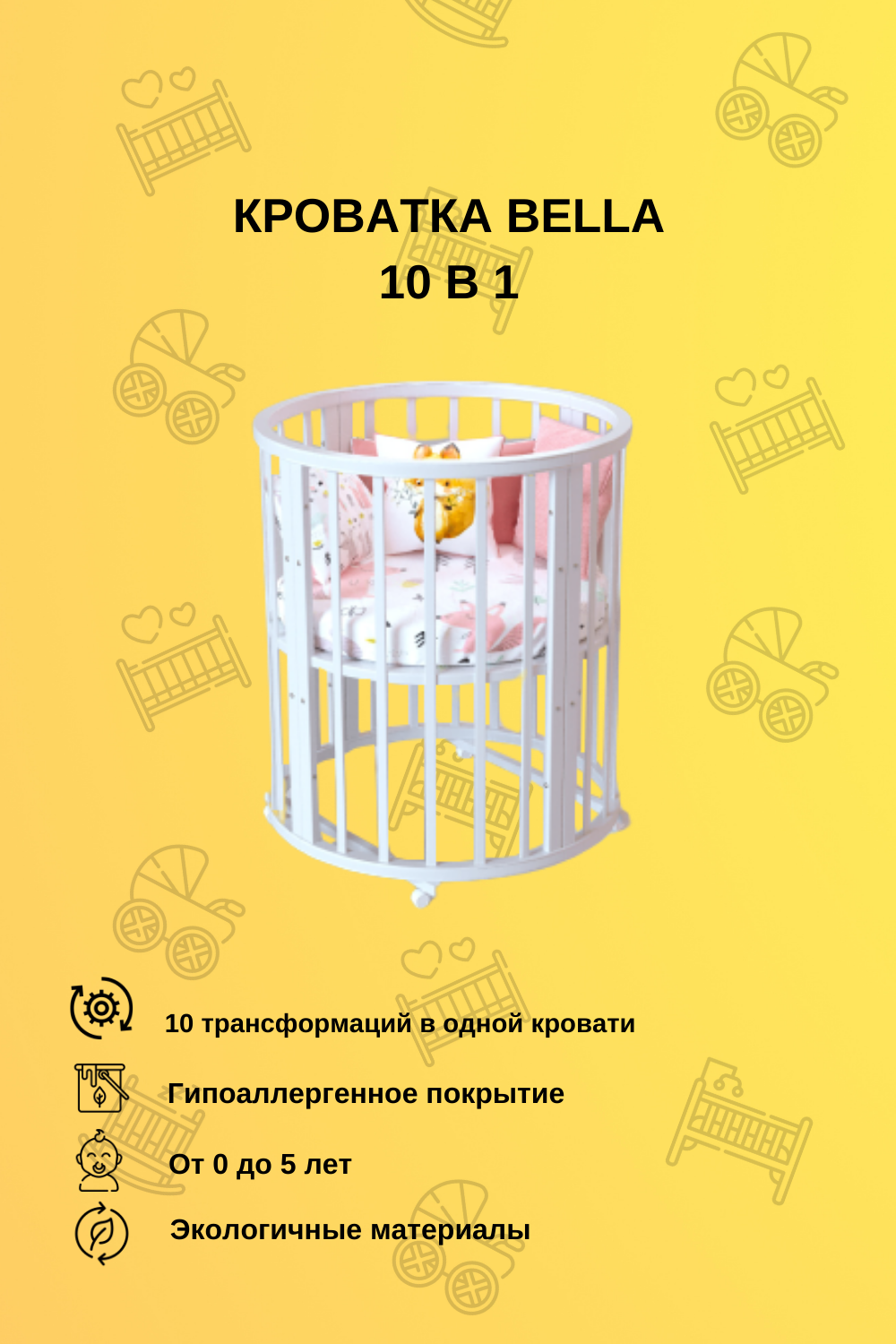 Кроватка детская Incanto Bella 10 в 1, цвет белый интересное: