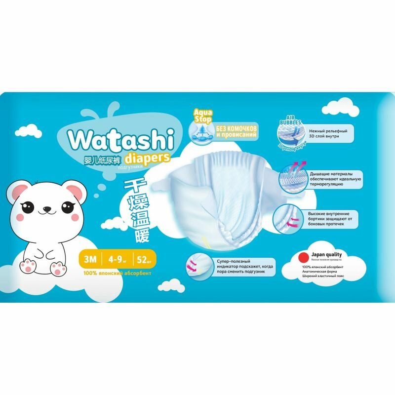 Подгузники одноразовые Watashi для детей 3/М 4-9 кг 52шт 7790316 .