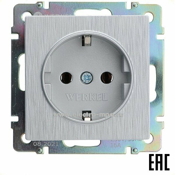 Розетка с заземлением Werkel W1171006, цвет серебряный, IP20