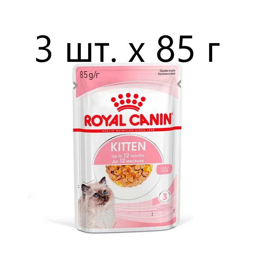 Купить Влажный корм для котят Royal Canin Kitten, 3 шт. х 85 г (кусочки в желе)