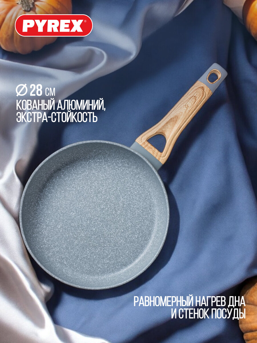 сковорода PYREX Optima Stone 26см антипригарная, кованый алюминий, индукция