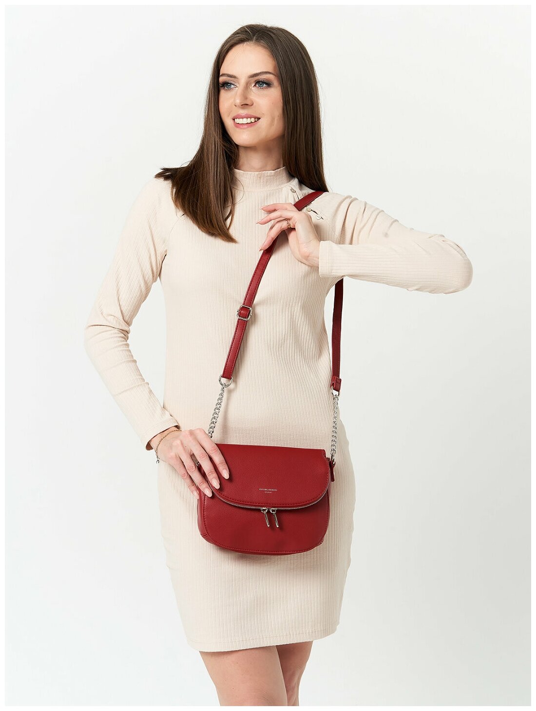 Купить Стильная, влагозащитная, надежная и практичная женская сумка из экокожи David Jones 6628-1K/DARK-RED