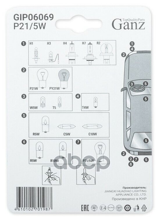 Лампа 24V P21/5W 21/5W Bay15d Ganz 2 Шт. Блистер Gip06069 GANZ арт. GIP06069