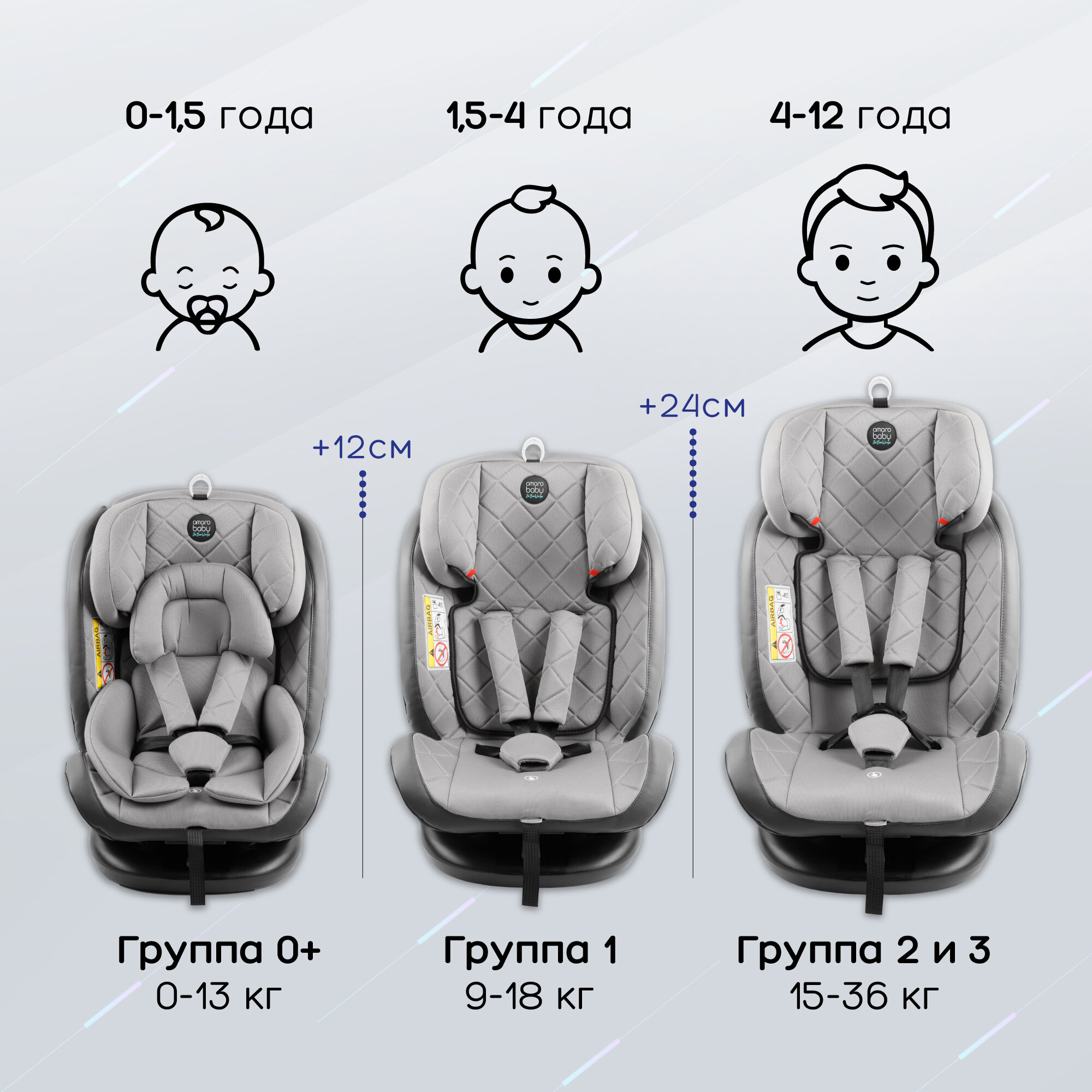 СохранитьАвтокресло детское AMAROBABY Brilliant ISOFIX класс D, группа 0+/1/2/3, (серый) интересное: