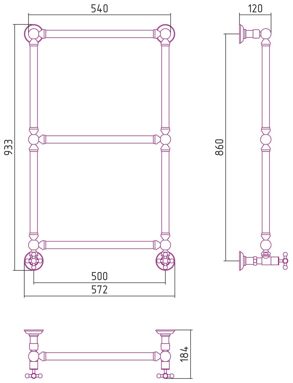 Полотенцесушитель водяной Сунержа 00-0280-8650 Ренессанс Полотенцесушитель водяной 860х500 мм, без покрытия
