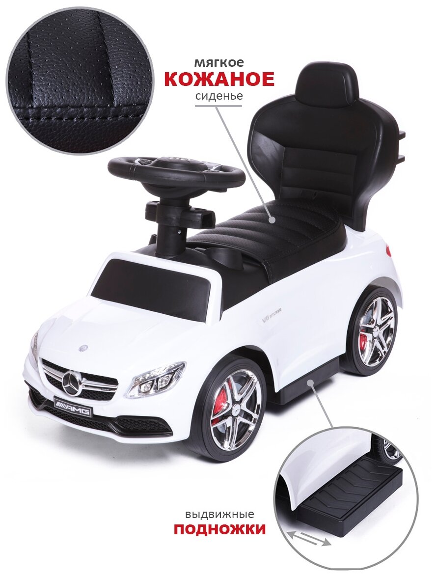 Каталка детская Mercedes-Benz AMG C63 Coupe BabyCare, (кожаное сиденье, резиновые колеса), белый интересное: